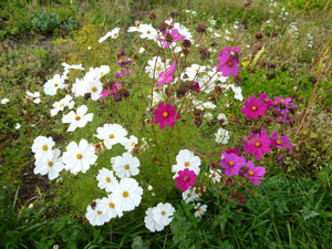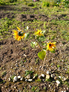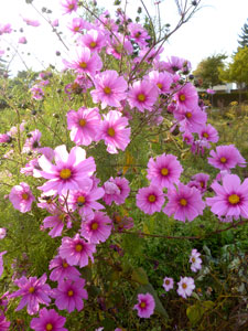 | Am 12. November müssen lt. Vorgabe der Münchener Stadtgüter alle Parzellen "ohne", d.h. kommplett abgeräumt und abgeerntet sein. Ein paar spät gesäte Sonnenblumen stehen sturmzerzaust noch auf meiner Parzelle, haben jedoch trotzdem schon kleine Kerne. Diese sind für meine süssen Lieblinge, zu sehen auf meinem Fensterbrettl dank meiner "Bei peepart piepts!-Wildvogel-LiveCam". Zarte Cosmeen-Schönheiten der Nachbar-Parzellen erfreuen mein Herz und ein schönes Krautgarten-Jahr geht heute für mich zu Ende. |