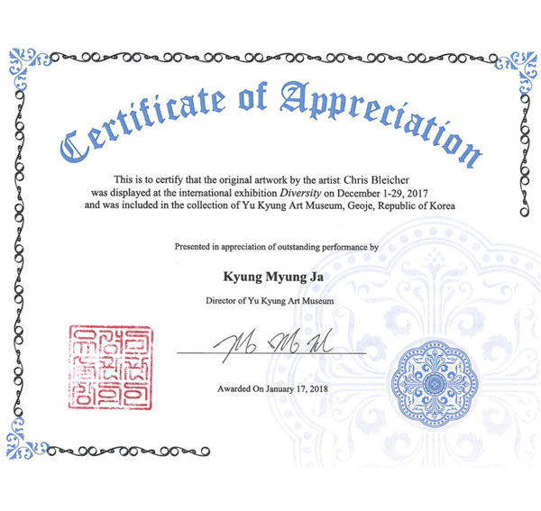 artistic career increasing awareness of your work. Attached is a Certificate of Appreciation from the museum.