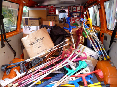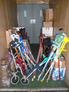 1.859 Brillen, 19 Paar Hörgeräte, 12 einzelne Hörgeräte, 15 Paar Krücken, eine einzelne Krücke,