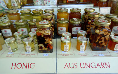 Köstliche, farbenfrohe pikante und süsse ungarische Spezialitäten luden die
