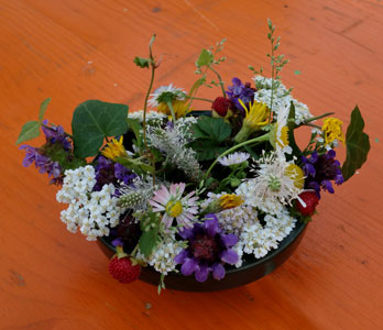 10 verschiedene Blumensorten, angefangen von der lila-braunen Braunelle, der weissen Schafgarbe,