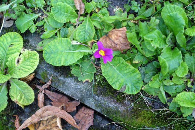 Primelchen vor meiner Haustüre. Somit blühen Primeln bei mir 3 x pro Jahr!