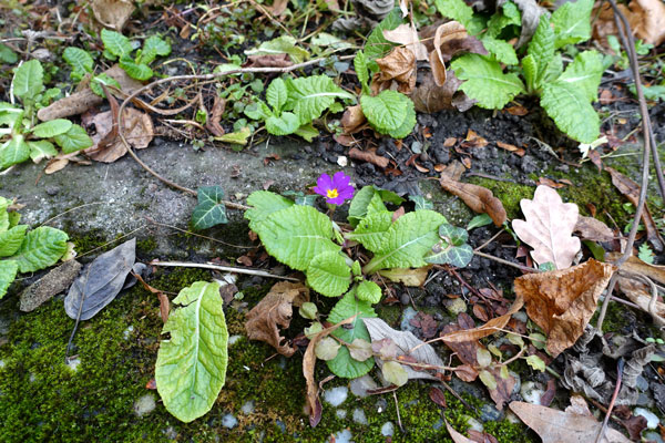 Der grosse Schnee ist weg und schon streckt ein erstes Primelchen zwischen Steinplatten