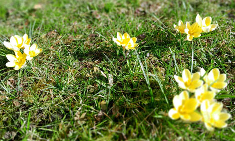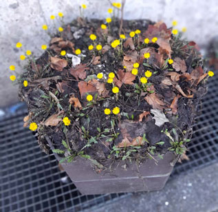 Free English translation Unexpectedly, I discover the first spring flowers on my way to an appointment.