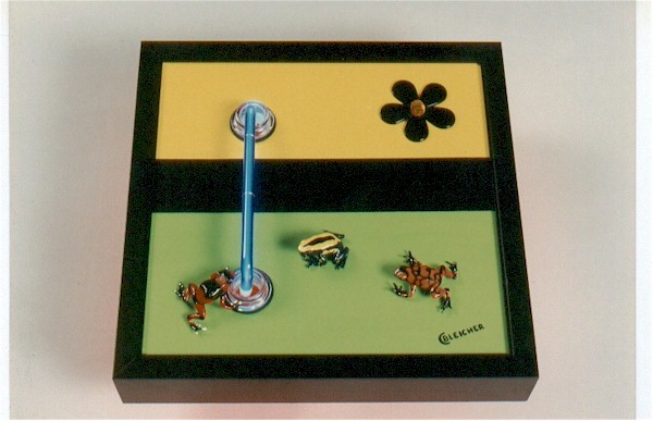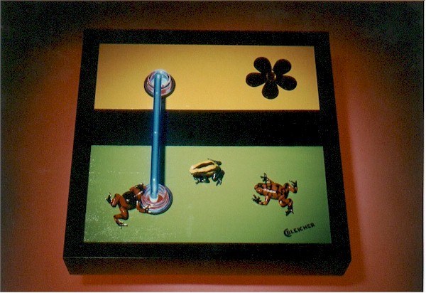 ![]() Small Beauties Crossing the Street II - daytime Neon Picture Object Mixed media, threedimensional man made frogs on acrylic, blue and orange neon installation, 13,5" x 13,5" | |