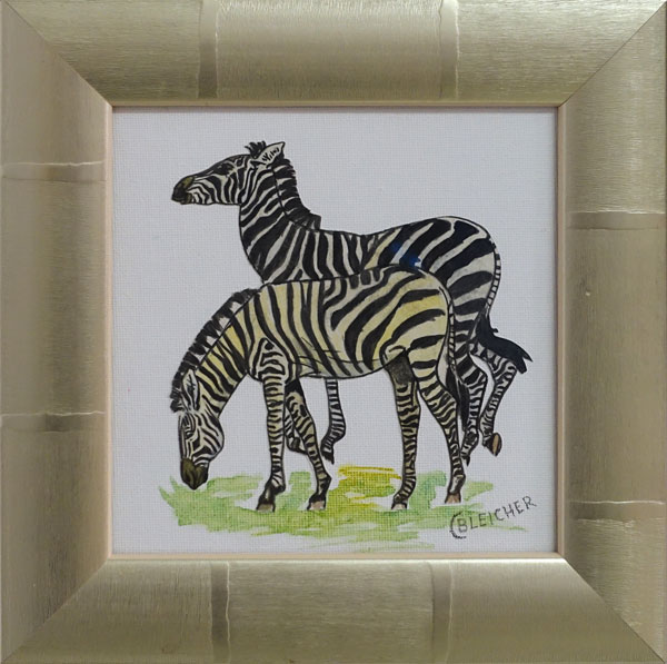 Zebra Jugendarbeit, Wasserfarben-Collage auf Leinwand auf Karton 21 x 21 cm