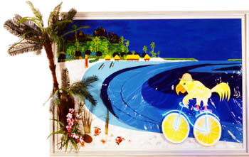 Neon Bild Objekt "Zitronenfahrrad" 'fiel' von der Wand und begräbt - oh Graus! -