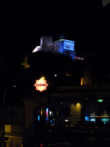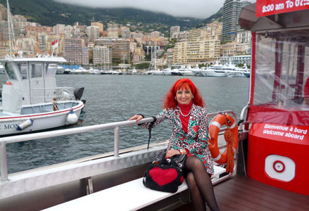 immer teurer? Laufe schnell rüber zur Marinepolizei um das Knöllchen zu bezahlen, was nicht möglich ist. Dabei sagt man mir zu meiner Überraschung, dass mein Transporter zu gross gewesen sei, denn sonst wäre er abgeschleppt worden! Aber: Wohin damit? Ins Grimaldi Forum lassen sie mich heute Abend zum Ausstellungsabbau nicht vor 19h einfahren. So klimpere ich fleissig mit meinen falschen, bunten Glitzerwimpern und überzeuge den Polizeichef: Er ist so freundlich und setzt seine private Limousine um, sodass eine entsprechend große Fläche frei wird und parkt mir mein "Monster" sogar ein, da ich mit dem Einparken rückwärts ungeübt bin. Gut, dass ich im Transporter Bildtäfelchen meiner Souvenir-Serie mit bayerischen Motiven habe, die ich für "besondere Gelegenheiten" mit auf die Reise nahm. Er freut sich sehr darüber und ich frage mutig, ob ich nach dem Ausstellungsabbau bis zum nächsten Morgen nochmal im Jachthafen parken dürfte, da ich ja im Grimaldi Forum keinen Platz länger belegen darf. Und auch das wir mir genehmigt - Fazit: Anstatt Abschleppen und Knöllchen bekomme ich genehmigten Gratisparkplatz im Jachthafen - wenn das in Monaco kein Wunder ist! Die Überfahrt mit dem Bateau Bus zum Grimaldi Forum ist wie jeden Tag klasse und ich komme rechtzeitig an, um den letzten Ausstellungstag geniessen zu können. Gegen 17.30h mache ich mich wieder auf dem Weg zum Jachthafen, um den Transporter abzuholen. Der Ausstellungsabbau geht zügig voran und ich fahre mein Monster auf den genehmigten Stellplatz. Kleiner Snack und ein Glas Champus im Jachthafen in "Star's n'Bars": Ausgediente Rennfahreranzüge und -Stinkestiefel hinter Vitrinen und ein an der Wand aufgehängter Rennwagen dekorieren das lässige Ambiente. |