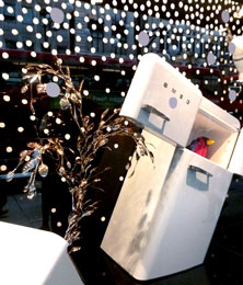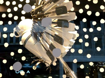 dem „England“ steht! Zuerst liefere ich meine geliebten LOVE STARs in der Pall Mall Gallery ab und freue mich, die Kuratorin Zina Berkovici persönlich kennenzulernen. Schnell die separat transportierten Neonteile installiert und ein Adapter-Geschäft finde ich auch. Die grössere Herausforderung ist das unterwegs verlorene Transferkabelchen von meiner Cam zum Laptop. Unmöglich, was passendes in London aufzutreiben. Doch ich glaube an eine Lösung und frage vorzugsweise Männer – liebe Damen, bitte Text in Klammern nicht lesen - (da ich der Meinung bin, dass die sich mit solchem Kram besser auskennen und wissen, wo ich sowas bekomme). Vor den Erfolg haben die Götter den Fleiss gestellt – je mehr Männer ich frage, desto höher die Trefferquote! Die Zeit läuft und ich auch, bis sich zwei Meinungen auf Jessops jessops.com in der Oxford Street konzentrieren: Dort ist ganz London für Weihnachtseinkäufe auf den Beinen und einige Schaufenster sind grandios dekoriert! Bingo! Jessops ist gefunden und der freundliche Verkäufer hat zwar kein Verbindungskabelchen sondern rät mir zu einem Dual Slot Card Reader und oh Wunder der Datentransfer von Cam zum Lap klappt bestens! Stecknadel im Londoner Heuhaufen ist gefunden und Starbucks um die Ecke. |
