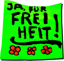 Blümchen auf neongiftgrünem Grund für FREIHEIT!