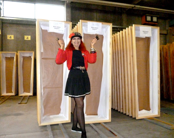 dort 1998 eine gute Woche meinen eigenen Sarg auf einem Podest im Rahmen