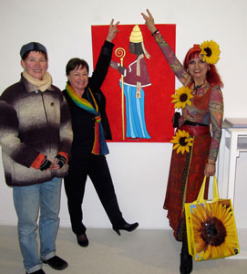 Marianne Pitzen, Ellen Sinzig (Frauenmuseum) und Künstlerin Heidi Adrian.