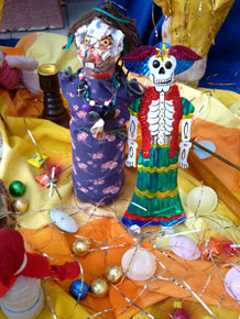 positiv mit mexikanischen "Dia de los muertos"-Installationen von Mexikanern,