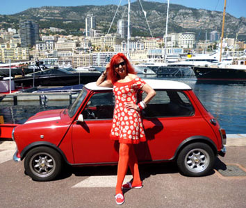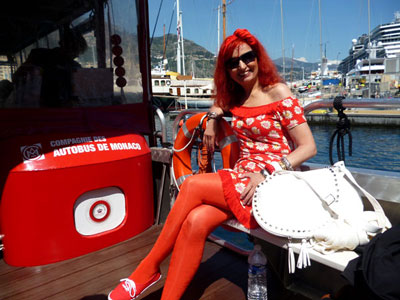servieren! Den Anfang mache ich mit einer kleinen "Rennsemmel", die ich im Jachthafen entdecke, die hervorragend zu meinem Red & White-Outfit passt. Zurück ins Hotel umstylen für den "grossen Auftritt": Eröffnung der ART MONACO'14 mit Soirée Vernissage, wieder in Rot/Weiss versteht sich!