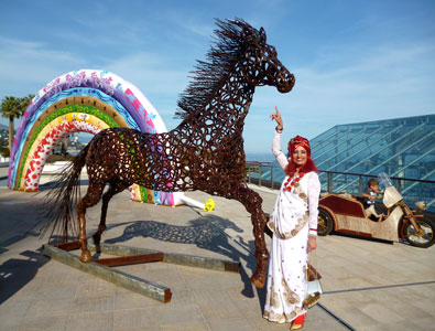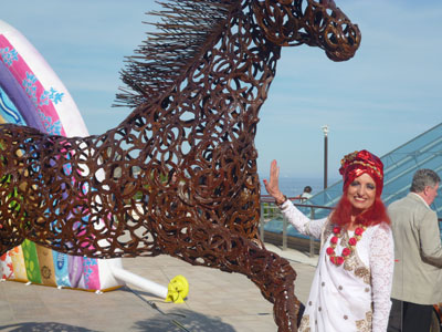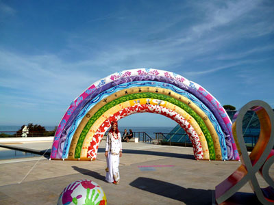 Schnell noch vor dem GRIMALDI Forum die obligatorischen Fotos mit farbenfrohen Kunstwerken: