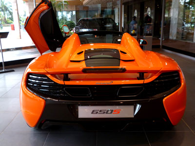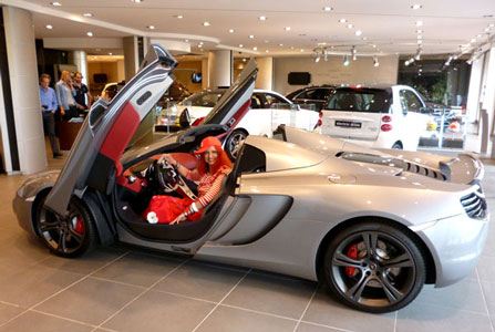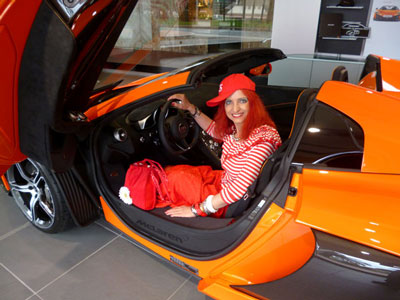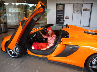 ausgefallenste Modell, ein orangefarbener McLaren mit Flügeltüren, auf