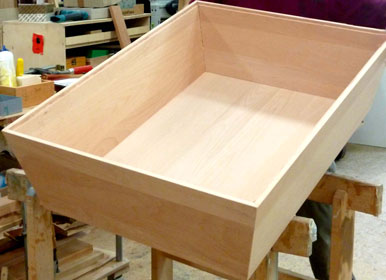 schräg gestellte Seitenwände sein, d.h. nicht gerade wie bei einer normalen Holzkiste.