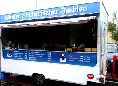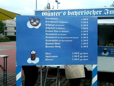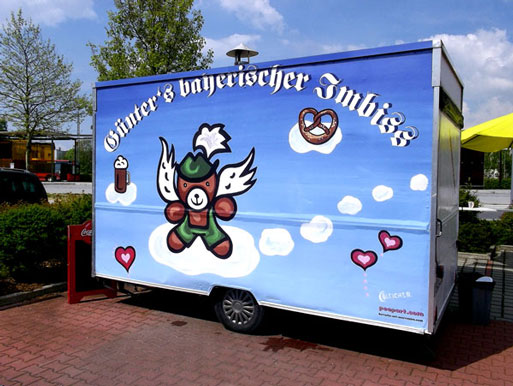 Stil von "corporate identity" dazu noch die Imbisswagenvorderseite, die Speisenkarten,