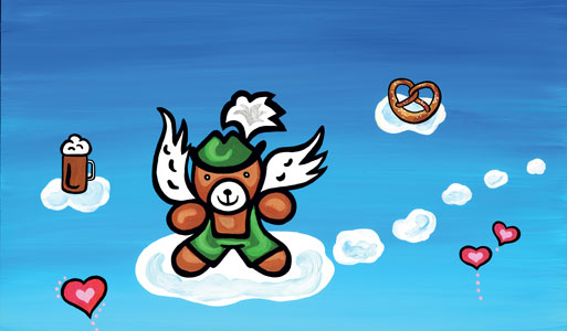 "Teddy auf Wolke für die 4 m lange und über 2 m hohe Rückwand eines Imbisswagens"