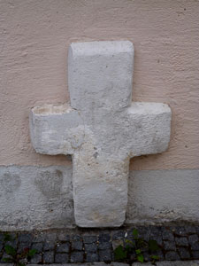 dessen Kreuz versteckt an einer Hauswand zu sehen ist. Isarabwärts spazieren wir