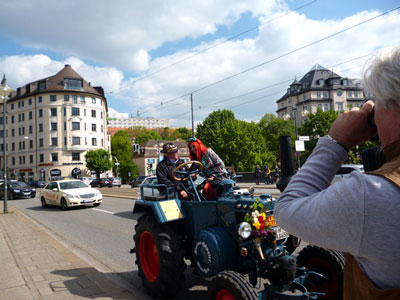 Beim Videodreh auf der Museumsbrücke winkt mir der Fahrer eines originellen