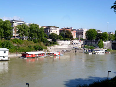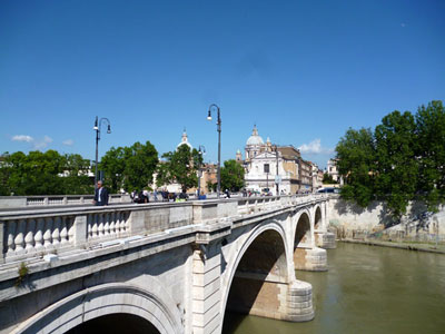 Entlang dem Fluss Tevere zur Engelsburg in Rom