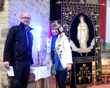 ![]() Jean Claude Hauser mit Chris Bleicher vor der Übergabe der St. Gertrudis-Inspiration mit Neon in der Stiftskirche zu Nivelles |