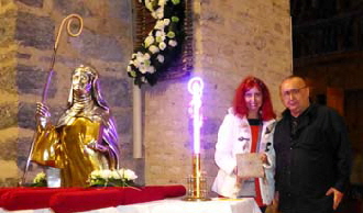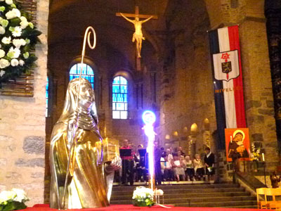 ![]() Segnung von Chris Bleichers St. Gertrudis-Stab mit Neon durch Dechant Albert-Marie Demoitié in der Stiftskirche St. Gertrud zu Nivelles. |