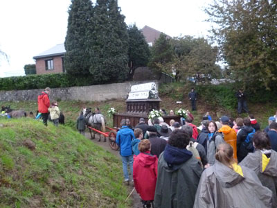 peepart Tagebuch 5. Oktober 2014 1. Teil: Nivelles: Mit St. Gertrudis-Schrein und Pferden über nassbraune Ackerschollen |