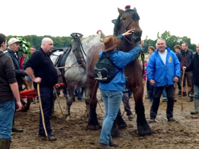 ![]() Ausspannen der fünf Pferde für den schwierigsten Teil der St. Gertrudis-Prozession |
