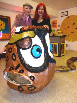![]() Hera Rauch und Chris Bleicher mit Riesenjaguar-Kopfstand-Bartisch, und RJ-Schwanz auf dem Boden |