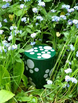 wie der Korpus um Gewicht zu reduzieren) von unten checken kann. Insbesondere das "Leichtbaugerüst" aus gerecyceltem Bauholz, auf dem er fünf Jahre schief anstatt richtig, d.h. plan auf dem Boden stehend in der Tierpark Hellabrunn Tiefgarage geparkt war und das im Korpus steckt wenn der Kopf aufgesetzt wird. Dass meine damalige Bauweise, (u.a. mit Recyclingmaterial "plus" = Künstlergeheimnis) die zeitlich unter absolutem Hochdruck stand, nach satten 20 Jahren mit jahrelanger fragwürdiger Lagerung in so einem Top-Zustand ist - Hurrah! Das erinnert mich an einen Presseartikel mit dem Titel "Kunst für die Zukunft" über meine damalige Vernissage "Die Nacht der Venus im Jaguar" mit meinem RJ als Glanzstück. Nachdem Hera den RJ ausgiebig inspizierte, widmen wir uns meinen (Tier-)Urnen & (Tier-) Särgen, den Hauptgrund ihres heutigen Besuches. Nach jahrelanger PR in Presse & TV erwerben immer mehr Menschen schon zu Lebzeiten eine letzte Bleicher-Ruhestätte für ihre lieben Haustiere oder auch für sich selbst (man gönnt sich ja sonst nix!) Die Nachfrage ist groß, sodass ich immer genügend Modelle der einzelnen Motive vorrätig halten muss, da die Lieferung meist kurzfristig erfolgen soll. Aktuell ist SatinA grün mit grauen Katzenpfötchen in Arbeit; selbst als Serie gemalt ist jedes liebevoll gemaltes Modell durch geringe Abweichungen ein Unikat. Da vor meiner Haustür derzeit u.a. die Vergissmeinnicht spriessen, schnell ein paar Frühlingsfotos für meine treuen LeserInnen. |