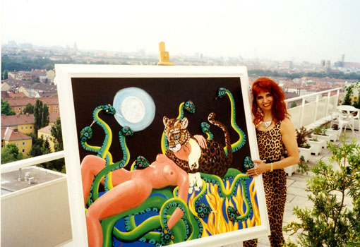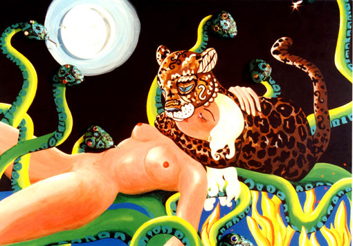 ![]() Detail - RJ-Archiv: Detail "Die Nacht der Venus im Jaguar" (Neon Bild Objekt mit weißem Neon-Mond) - Vernissage mit gleichnamigem Titelbild, 1995 |