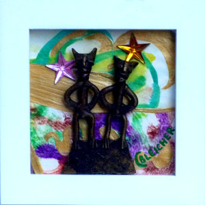 hellblauen, lila und goldfarbenen Sternen über deren Köpfen. Meine Isarsteine glänzen