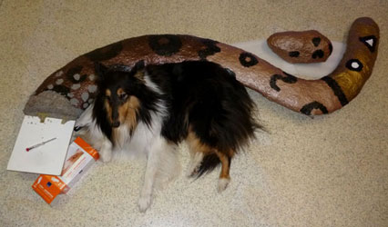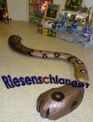 der wie eine abgenudelte Riesen-Anakonda auf dem Fußboden in Arbeit ist. Oft fragte ich mich, wie kann es sein, dass der Schwanz des RJ im Verwaltungsgebäude des Münchner Tierpark Hellabrunn - wo er so viele Jahre sicher und schön stand - plötzlich "abbricht"? Insbesondere, da der Schwanz für Transportzwecke zum Ein-/Ausstecken in den RJ-Body konzipiert ist, d.h. entfernt werden soll! Stattdessen ist er - oh Wunder! – auf einmal mangels Halterung mit Metall fixiert, einbetoniert und als Sahnehäubchen ist die Sinnlosigkeit mit grauen Flecken "verschönt"... Ich kann mir nur vorstellen, dass mit dem damals neuen Tierparkdirektor, der alles vom Vorgänger ratzfatz entfernen ließ (Duftmarkenbeseitigung?), auch mein RJ zum Opfer fiel: Er sollte vermutlich - ohne mich zu informieren - umgestellt werden, was misslang, da der Schwanz beim Hochheben abbrach, da nicht dafür konzipiert. (Wie war das doch gleich mit Beuys und der Butter?) Dann reparierte und "kaschierte" man das Malheur ... Als ich informiert wurde, das "gute Stück" abzuholen, traf mich fast der Schlag als ich die Bescherung sah. Stundenlang stemmte ich vorsichtigst am Boden liegend den Schwanz aus der Betonierung/den Metallteilen heraus, damit der Korpus überhaupt transportfähig ist. Für neue peepart Tagebuch-LeserInnen siehe 13. Februar Schön ist, dass sich alles zum Guten wendete! (peepart-Tagebuch 5. März 2015 So fixiere ich nun "mit Geduld und Spucke" eine neue Halterung - schließlich soll der RJ wieder in seiner voller Schönheit die Herzen der Menschen erfreuen. |