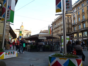 in Mailand gibt's viele!), Vespas und Autos von rechts, links, gefühlt auch