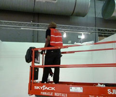 zum Pier 94, wo der Aufbau in vollem Gange Ist. Bevor ich das Kfz abgebe