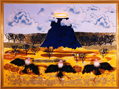 "Tanz um den Vulkan" mit gelber Neoninstallation zur Verfügung stelle. Da
