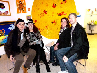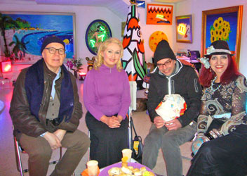 Ihr liebevoller und herzlicher Charme Damit geht mir das Herz auf und auch bei Michaela Hug-Szajer's facebook Eintrag, den ich ebenfalls verwenden darf: "Chris Bleicher ist eine interessante, superstarke, ideen- und facettenreiche, tatkräftige und erfolgreiche, verrückte, lebenslustige, aufgeschlossene Künstlerin und auch noch idealerweise naturverbundene Superfrau. Die Führung durch ihr schrilles Atelier und die Entstehungsgeschichten ihrer crazy-bunt gemalten Bilder (mit fachmännisch eingearbeiteten) Neonlichteffekten, lustigen Skulpturen (mit Sinn dahinter!), ungewöhnlichen Särgen (man möchte beinahe mal probeliegen), individuellen Urnen (auch für Tiere) u. u. u. ließ die Blicke in "neue Welten schweifen und nur noch von schillernden farben träumen... "I have a dream" - " DARLING"...G. E Damit endet ein ereignisreicher, klasse Tag mit geschätzten 200 abgegebenen Brillen (zugunsten Brillen Weltweit). Herzliches DANKE an Alle, die zum heutigen Erfolg beitrugen. |