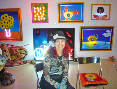 Die liebe Dagmar Neiser, die wieder den Neon-Art-Welt-Eingang