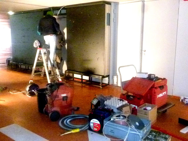 29.11. Vorbereitung für Neoneinbau im Premierenhaus, Erl, (Österreich)
