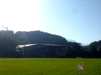![]() Gegen die Sonne fotografiert: Mich begeistert die Silhouette vom Premierenhaus in Erl! |