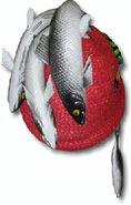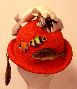 ![]() Chris Bleicher's Isarfischer-Hutkreation mit 3D-Kunststoff-Fischen |
