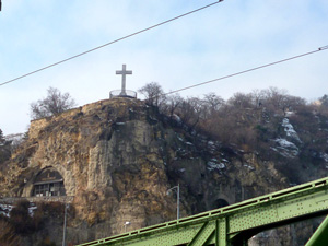 Der Eingang zur Höhlenkirche ist gegenüber dem Gellért Thermalbad