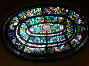 Im altehrwürdigen Jugenstil-Gebäude leuchtet pink Neon und beides