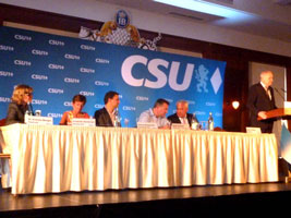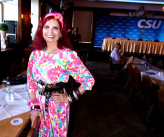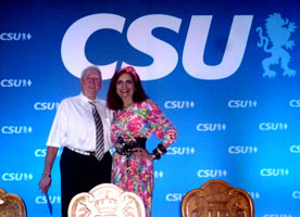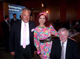 wurde im Ungarn Panorama oben auf Titelseite veröffentlicht: www.ungarnpanorama.de Als PARTEILOSE Neon- und Performancekünstlerin mit Kultusminister Dr. Ludwig Spaenle, MdL und Ministerpräsident Horst Seehofer: "Fulminanter CSU-Parteitag im Hofbräukeller, München" - Die Eröffnung und Begrüssung erfolgte durch den Bezirksvorsitzenden Dr. Ludwig Spaenle, MdL, danach die Ehrung von Stadtrat Walter Zöller. Gast und Redner war der Parteivorsitzende und Bayerische Ministerpräsident Horst Seehofer. |