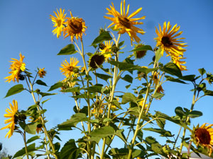 | Vor dem angesagten Temperatursturz ernte ich schnell noch bei schönstem Wetter soviel wie möglich. Erste Sonnenblumen werden geköpft, da ich die Kerne u.a. für meine Wildvogel-LiveCam verwende. Somit kommen auch meine lieben "Kleinen" in den Genuss von 100% BIO. |