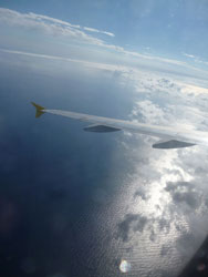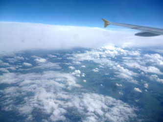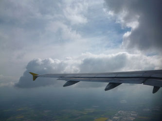 (3. Mai) zur BIENNALE Barcelona. Bin wieder gespannt, was mich erwartet? Ausnahmsweise mit Fensterplatz nütze ich diesen für Fotos. Diese Naturschauspiele inspirierten mich in den 90ern zu meiner Open-End-Serie "Himmel, Wolken & metallische Körper", wo ich Original-Flugzeugteile verwende. Immer wieder begeistert mich, wenn die Tragflächen ihre Flappen auf und zuklappen... |