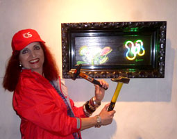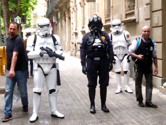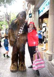 Neon Bild Objekt NIGHTLIFE 2 vertrauensvoll in die Hände der Museumsmitarbeiter. Weshalb ich meine Kunst PERSÖNLICH liefere hat seinen Grund: Häufig bekam ich mit, dass Kunst verspätet oder überhaupt nicht - auch mit guten Lieferservices - eintrifft oder beim Zoll hängenbleibt. Dazu kann ich NICHT davon ausgehen, dass selbst als ZERBRECHLICH deklariertes auch so behandelt wird. Zu meiner Freude kann ich unter diversen Galerie-Einladungen wählen und entscheide mich selbstverständlich für schöne locations :-) Kleiner Spaziergang durch den Parc de la Ciutadella in der Nähe vom Triumpfbogen, dann wieder zurück zum MEAM, um zu sehen, wo und wie mein NIGHTLIFE 2 von der Wand leuchtet (mit multicolor Schmetterling). Mit Künstlerin Magie Traynor schnell ein Kaffee um die Ecke in einem der hübschen Café-Bars, bevor wir uns die berühmte Kathedrale ansehen. Auf dem Weg dorthin bleibt nur Zeit für Window-Shopping. Danach düsen Magie und ich zum Casa Battló von Gaudí - es ist einfach fantastisch durch seine Phantasiewelt zu spazieren! Auf dem Weg ins Hotel erinnern mich viele schöne Neoninstallationen an NYC bis ich plötzlich von Star Wars Kriegern umzingelt bin! |