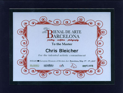 Barcelona im MEAM (Museum für moderne europäische Kunst). Nach vielen Jahren - teils internationaler - Ausstellungstätigkeit kann ich mir aussuchen mit wem und wo ich ausstellen möchte, was keinesfalls selbstverständlich ist. (Selbst wenn sich Künstler oft jahrelang bewerben, bleiben die meisten erfolglos.) Umso mehr freut es mich, dass ich von den ITALIENISCHEN Kuratoren (und Brüder) Russo in so eine ehrwürdige location (MEAM Museum) eingeladen wurde. Dazu ist Barcelona ja wirklich eine Reise wert! Bevor die Gäste einströmen gönne ich mir einen kleinen Rundgang durch die internationale und qualitativ hochwertige Kunstwelt. Nach der BIENNALE Eröffnung gibt es für die Gäste kleines Buffet und Party im MEAM bis in den späten Abend. |